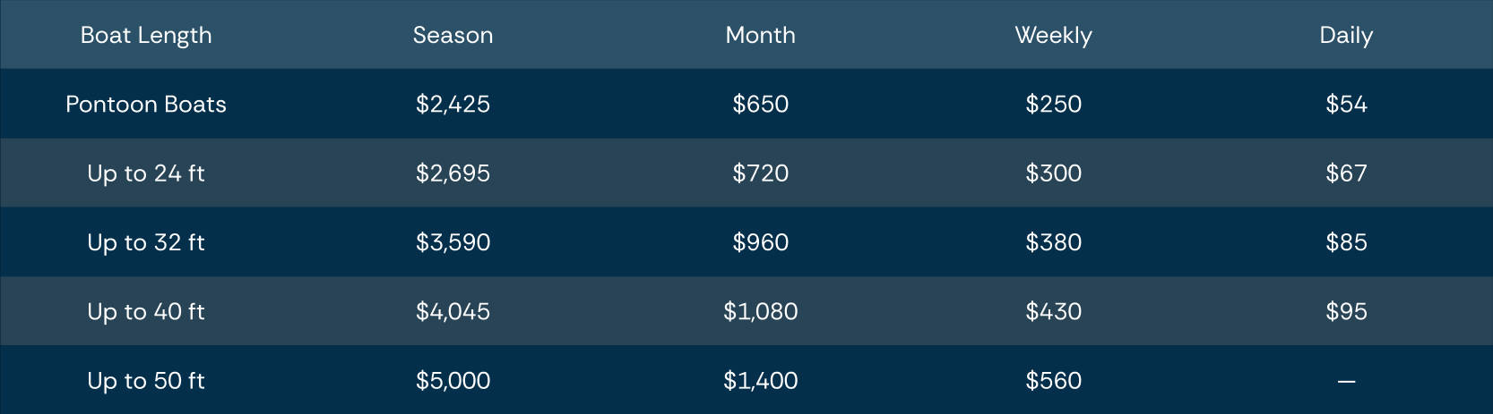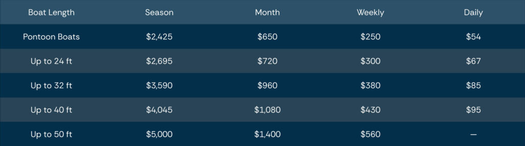 River Dock Rates – 2026 Season